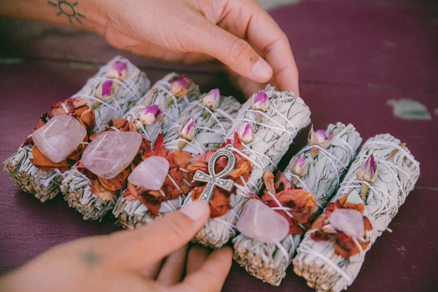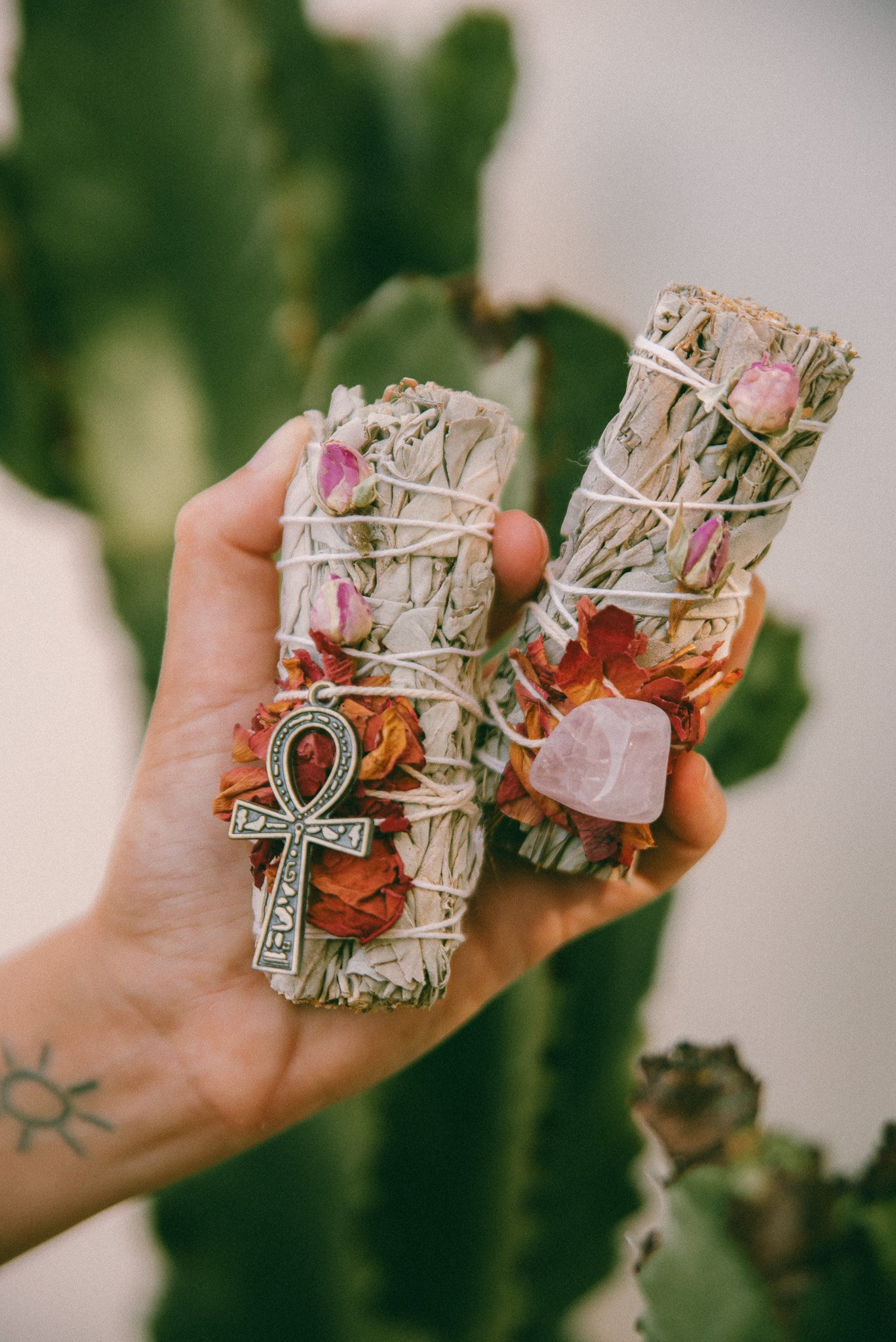 Sahumerios artesanales con cristales, creados con intención para limpiar y armonizar espacios y la energía de personas. Un apoyo natural para rituales de limpieza energética y momentos de bienestar. El humo de salvia blanca transmuta, purifica y armoniza.