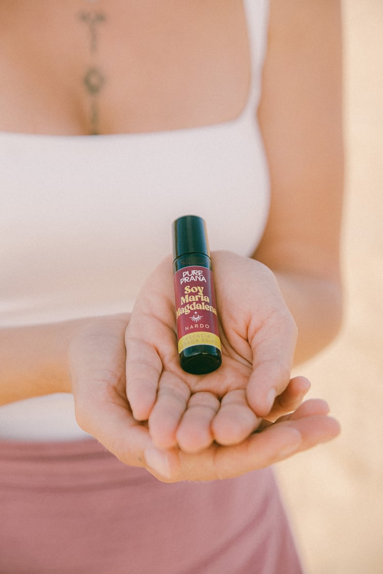 "Estoy acostada en la cama con el Roll On de María Magdalena y leyendo. En realidad soy muy sensible a los perfumes, pero con esta esencia podría envolverme por completo. Voy a necesitarla de nuevo pronto. Tengo la impresión de que me ayuda a enraizarme."